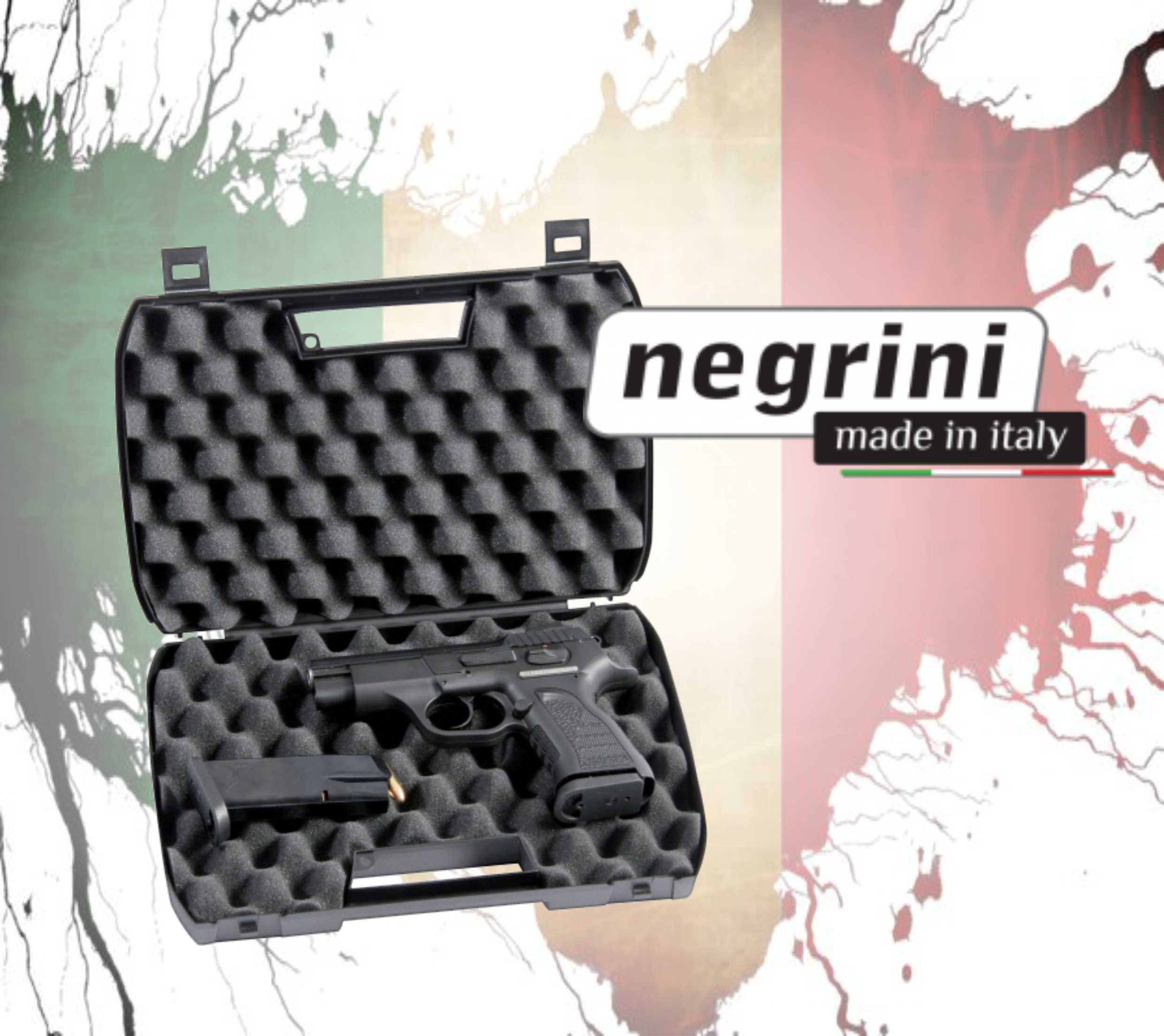 هاردکیس کلت negrini ایتالیا مدل 2012 با دو قفل کلیپسی و فضای تعبیه شده روی کیف برای زدن قفل اضافه مناسب برای حمل و نگهداری کلت های گازی و جنگی ارگان های نظامی، باشگاهی و دولتی